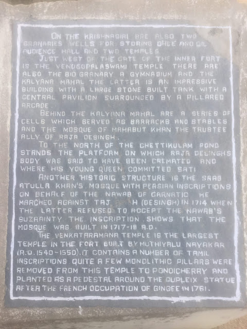 Gingee has three inaccessible hills- KRISHNAGIRI, CHANDRAGIRI AND RAJA GIRI.