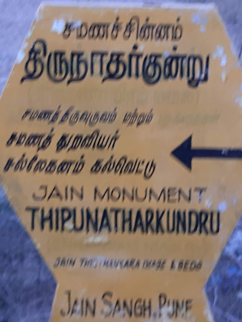 Two kilometers from Chenji (Gingee) is Thiru Nathar Kundru (hill). The hillock on the western side of the road has two Jain caves and a huge boulder containing sculptures of all the 24 Theerthankaras (Jain Saints) in the ninth century style. An open rock nearby was the place where monk Chandranandi observed 57 days of fasting and died around sixth century CE.