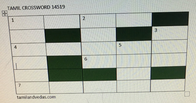1. – (6 எழுத்துக்கள்)- இந்துக்களின் புனித நதி 3 இடங்களில் பாய்வதாக ஐதீகம்- இது விண்ணில் பாய்கிறது