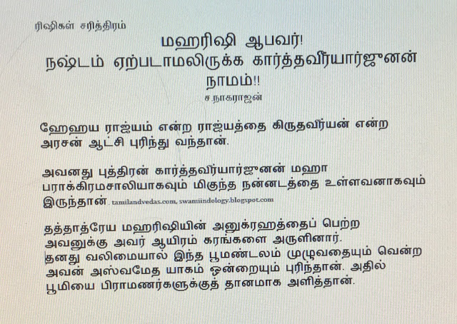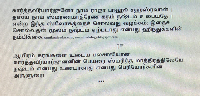 கார்த்தவீர்யார்ஜுனோ நாம ராஜா பாஹு ஸஹஸ்ரவான்