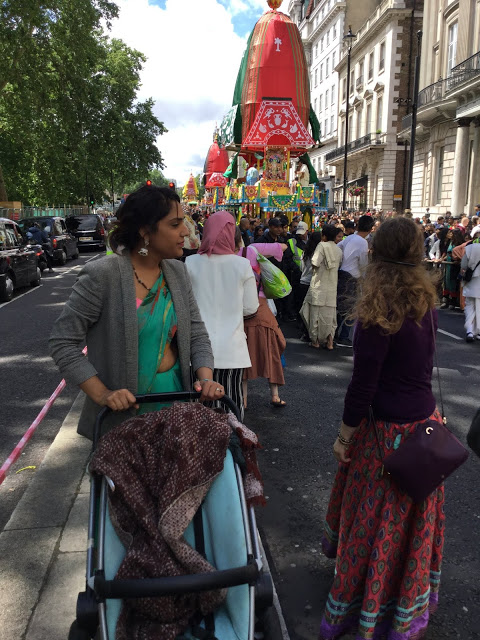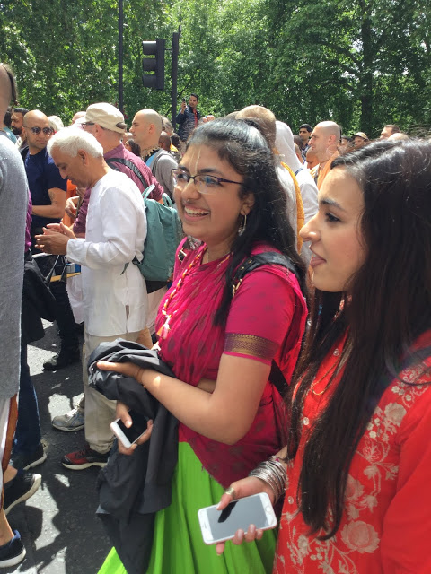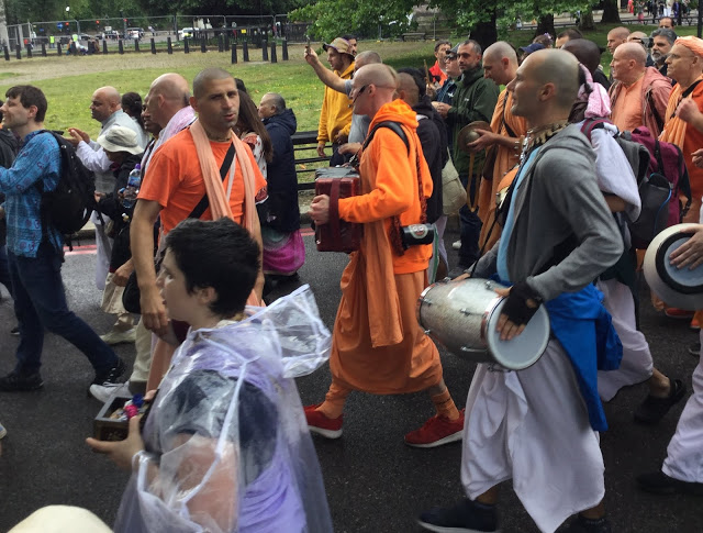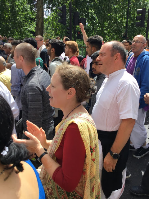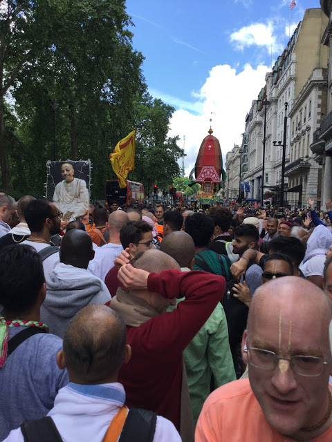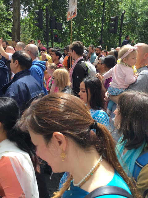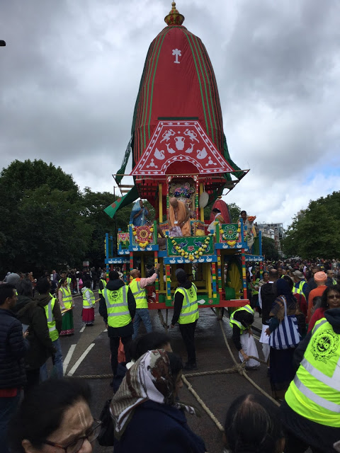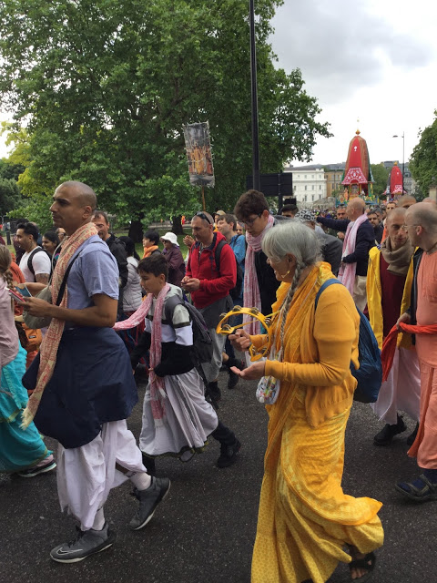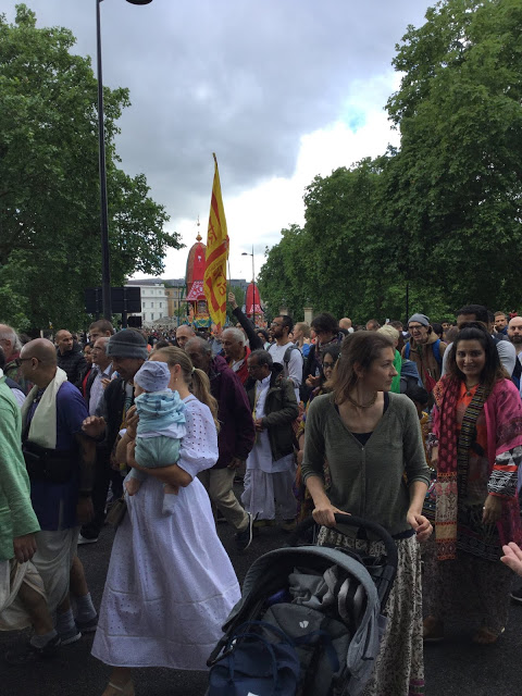ISKCON’s Rath Yatra was celebrated this morning (16th June 2019)in London . As usual devotees came in thousands from different parts of the country and some from Europe. I have been attending Rath Yatra for over a quarter of a century in London. The crowd is swelling year by year. I saw the same devotion and dedication among the volunteers. Women came with their children in Prams. Since it was an orderly crowd I saw less police personnel.