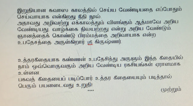 கீதையின் நடை மிக எளியது. உபதேசம் நேரடியானது- நெளிவு சுழிவு இல்லை.