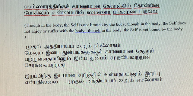 பகவான் கீதையில் கர்ம யோகத்தைச் சிலாகித்துப் பேசவில்லை. உடலெடுத்தவன் கர்மா செய்யாமல் இருக்கமுடியாது- அதை எப்படிச் செய்து மீண்டும் கர்ம வலையில்- பிறப்புத் தளையில்- மாட்டிக்கொள்ளாமல் இருக்கலாம் என்பதையே சொல்கிறார்.-making virtue out of necessity., not an independent imperative.