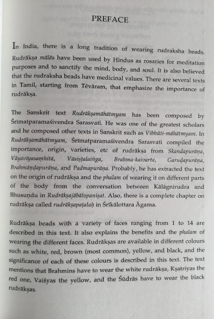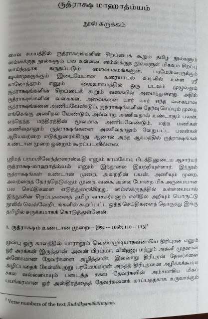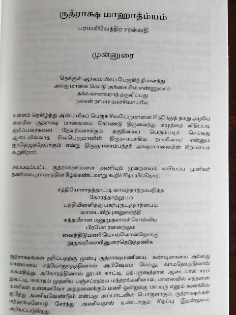 இதில் எத்தனை வகை ருத்ராக்ஷங்கள் உள்ளன, யார் யார் எதை அணிய வேண்டும், அதன் பலன்கள் என்ன என்பன வெளியிடப்பட்டுள்ளன. பேரூர்ப் புராணத்தில் காணப்படும் அரிய விஷயங்களும் முன்னுரையில் உள.