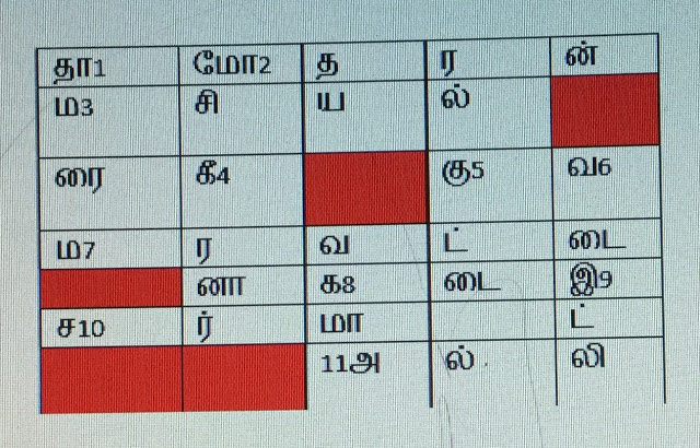 9. – 2-பெண்களின் வருணனையில் இது ஒல்லியாக இருப்பதாகச் சொல்லுவர்- கீழிருந்து மேலே செல்க.