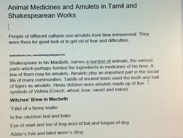 Animal Medicines and Amulets in Tamil and Shakespearean Works (Post No.6721)
