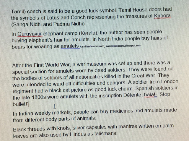 Amulets in Atharva Veda and Tamil Literature (see below)