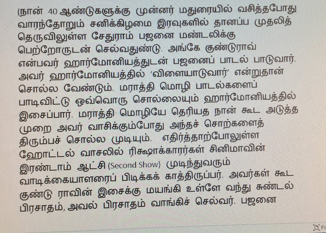 வயலினில் இப்படி சொற்களை வரவைத்து மக்களைச் சொக்க வைப்பதில் குன்னக்குடி வைத்யனாதன் கைதேர்ந்தவர். மதுரை சோமுவுக்கு லால்குடி வயலின் வாசிக்கும்போது , இடையே சோமு கொஞ்சம் நிறுத்தி, லால்குடி பக்கம் திரும்பி ‘அண்ணா, ஊம்” என்று கெஞ்சுவார்! லால்குடி அதே சொற்களை வாசித்துக் காட்டுவார்! எம்.எஸ்.ஜியும் இப்படி ஜாலவித்தை செய்வார். இதையெல்லாம் நேரில் கேட்டு அனுபவித்தவர்களுக்கு இவை மறக்காது!