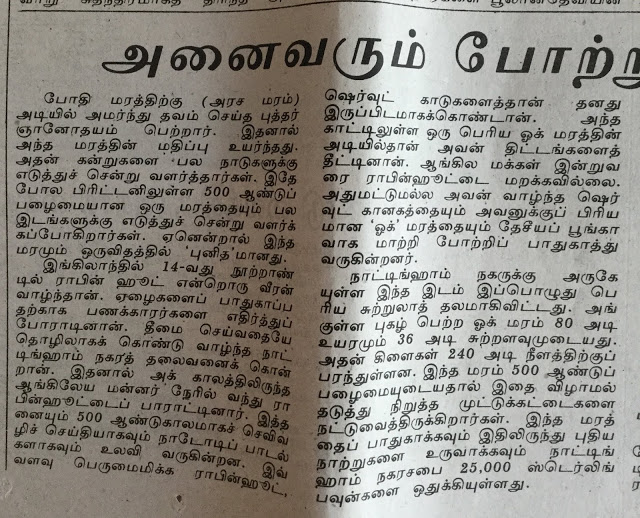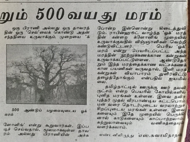 அனைவரும் போற்றும் 500 வயது மரம் ! published in Dinamani on 6-9-1992; written by S Swaminathan from London