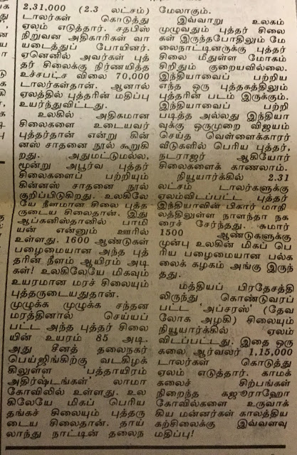 1.அமெரிக்காவில் இந்திய புத்தர் சிலை ஏலம்