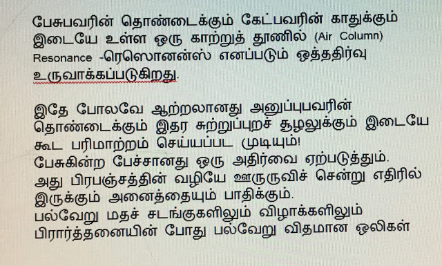 இதை வைத்துப் பார்த்தால், நமது முன்னோர்கள் சில ஒலிகளைத் திருப்பித் திருப்பி ஏன் கூறச் சொன்னார்கள் என்பதைப் புரிந்து கொள்ள முடிகிறது.