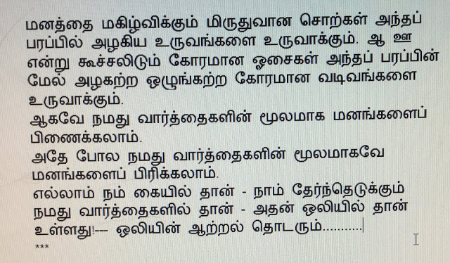 இப்படி இனிய ஒலி எங்குமே ஒரு நல்ல விளைவை ஏற்படுத்துகிறது என்பதை அறிவியல் சோதனைகளாலும் நேரடி அனுபவங்களாலும் நாம் உணர்கிறோம்.