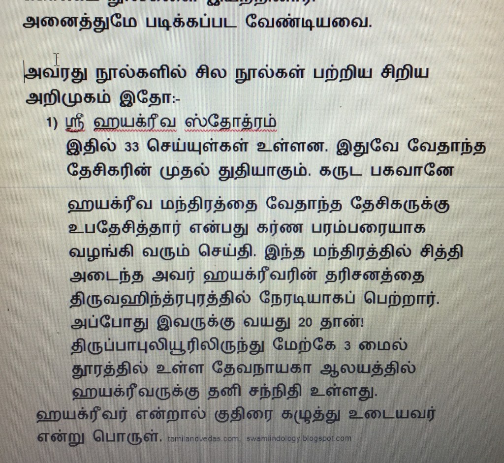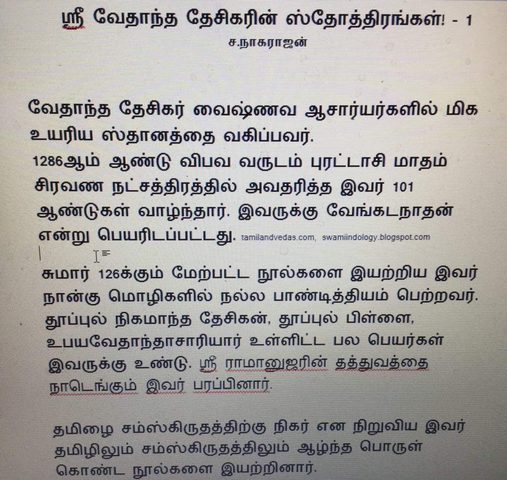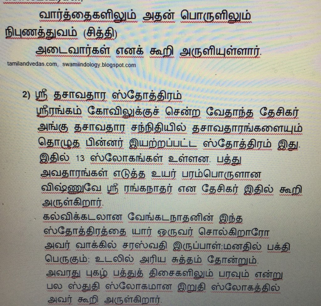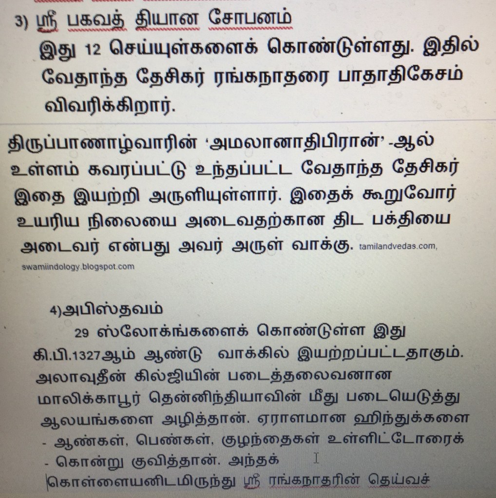 வேதாந்த தேசிகர் இயற்றியுள்ள நூல்கள் பற்றிய விவரங்களின் தொடர்ச்சி இங்கு தரப்படுகிறது.