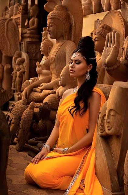 Queen Kshema was a great beauty. She looked like a golden statue. She was a proud peacock. Always boasting about her beautiful look. She was born in the royal family of Madraas. when she got married to Bimbisara she lived with him in the capital city of Rajagriha . Bimbisara was a disciple of Gautama Buddha. So he donated the royal garden Velu Vana to Buddhist Sanga/ Association. Buddha came to the royal garden. Bimbisara wanted his Queen to go and pay respects to Buddha. But she said ‘No’. The reason was that she was scared to see Buddha who would easily find her fascination with beauty and beauty products.