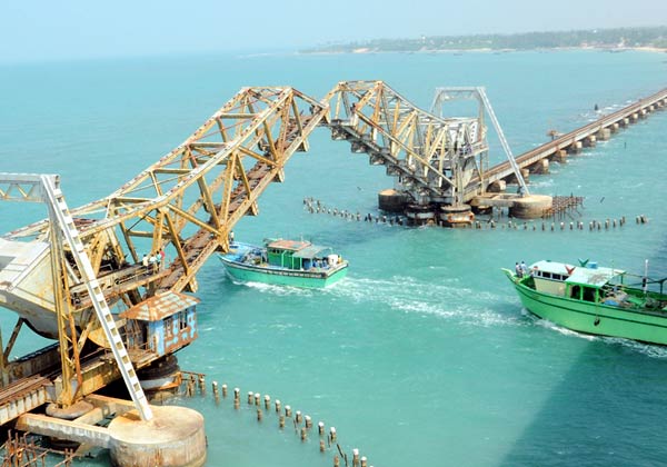 16. (4) /கீழிருந்து மேலே செல்க- ராமேஸ்வரத்தை இணைக்கும் பாலம்