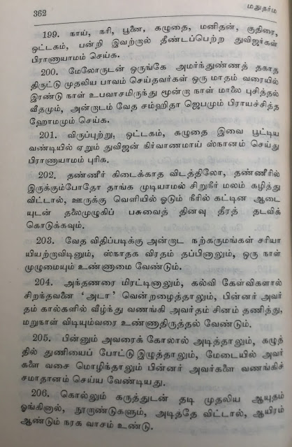 மநு நீதி நூலின் 11ஆவது அத்தியாயத்தின் கடைசி பகுதியைக் காண்போம். இது போக, இன்னும் ஒரே ஒரு அத்தியாயம் பாக்கி இருக்கிறது. அந்த 12 ஆவது அத்தியாயத்தைப் பின்னர் காண்போம். இதோ 11 ஆவது அத்தியாயத்தின் முக்கிய விஷயங்கள் – in bullet points –புல்லட் பாயிண்டுகளில் —