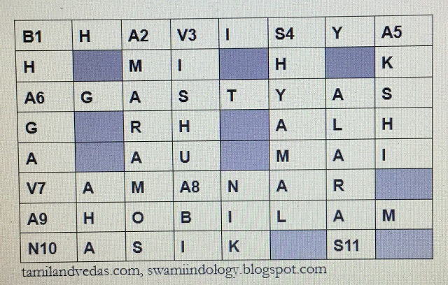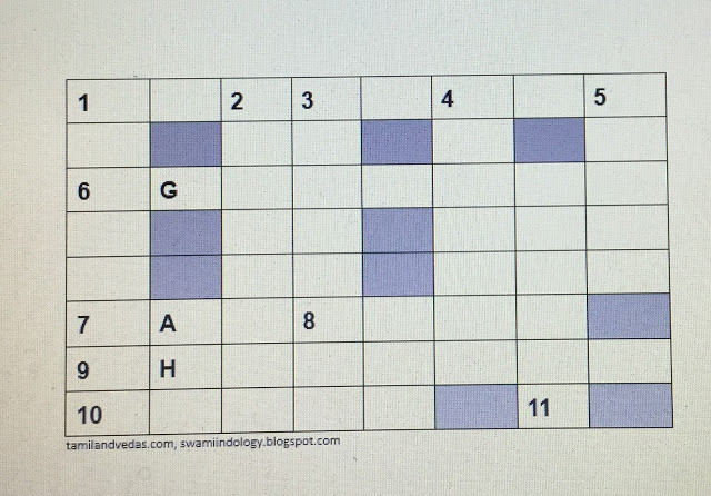 1.— 8 letters – Future is the meaning; it is attached to a Purana which predicts about future happenings