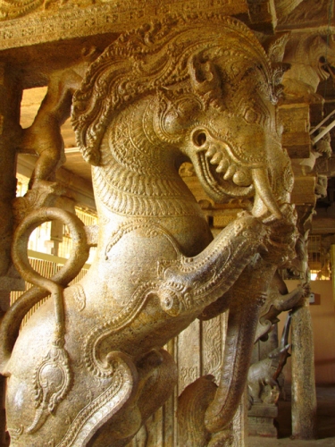 இதே போல பெரிய கோவில்களில் பிரதான மண்டபங்களில் யாளியின் சிற்பத்தைப் பார்க்கலாம்.