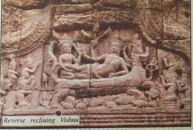 3. மூன்றாவது அதிசயம் கங்கை நதி சிவன் தலையில் இருந்து விழுந்து, விஷ்ணுவின் பாதங்களைக் கழுவி சமவெளியில் பாய்வதாக புராணங்கள் செப்பும். அதே போல சியம் ரீப் (Seam Reap) ஆற்றில் அமைக்கப்பட்டிருந்தது. ஆனால் போரினால் சீரழிந்த கம்போடியாவில் பாதுகாப்பற்றுக் கிடந்த சிலையின் உடல் பக்கத்தை மட்டும் அறுத்து எடுத்து மேலை நாட்டு மியூசியங்களுக்கு விற்று விட்டனர் சிலைத் திருடர்கள்.