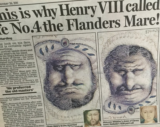 .500 ஆண்டுகளுக்கு முன்னர் இங்கிலாந்தை ஆண்ட Henry VIII எட்டாம் ஹென்றி ஒரு பன்றி. ஆறு பேரைக் கல்யாணம் செய்து 2 பேரைக் கொன்று மற்ற இரண்டு பேரை டைவர்ஸ் Divorce /விவாக ரத்து செய்த அபகீர்த்தி உடையவன் . ஐந்தாம் மனைவி குழந்தை பிறந்தவுடன் செத்தாள் . ஆறாம் மனைவியை விழுத்தா ட்டுவதற்குள் அவரே ( எட்டாம் ஹென்றி) நோயால் செத்தார்.அப்போது அவருக்கு வயது 56. அவரைக் கிண்டல் செய்யும் படம் இது . தலை கீழாகத் திருப்பிப் பார்த்தாலும் அதே குரங்கு மூஞ்சி தெரியும்.