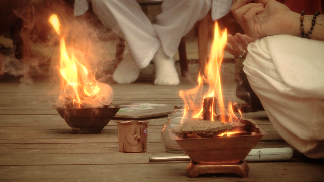 1.– (9 letters) Brahmins do it twice a day by offering milk and cooked rice in the fire. It is a fire sacrifice