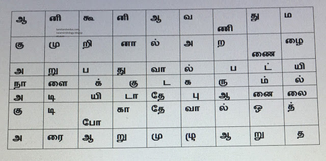 ஒரே சொல் மீண்டும் மீண்டும் வந்தால் ஓரிரு இடங்களில் மட்டுமே கட்டத்தில் இருக்கும். கொண்டு கூட்டி பொருள் கொள்க . விடை கீழே உள்ளது . சில நேரங்களில் படங்களைப் பார்த்தாலும் விடை காண உதவலாம்.
