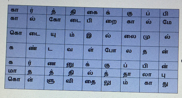 ஒரே சொல் மீண்டும் மீண்டும் வந்தால் ஓரிரு இடங்களில் மட்டுமே கட்டத்தில் இருக்கும். கொண்டு கூட்டி பொருள் கொள்க . விடை கீழே உள்ளது . சில நேரங்களில் படங்களைப் பார்த்தாலும் விடை காண உதவலாம்.