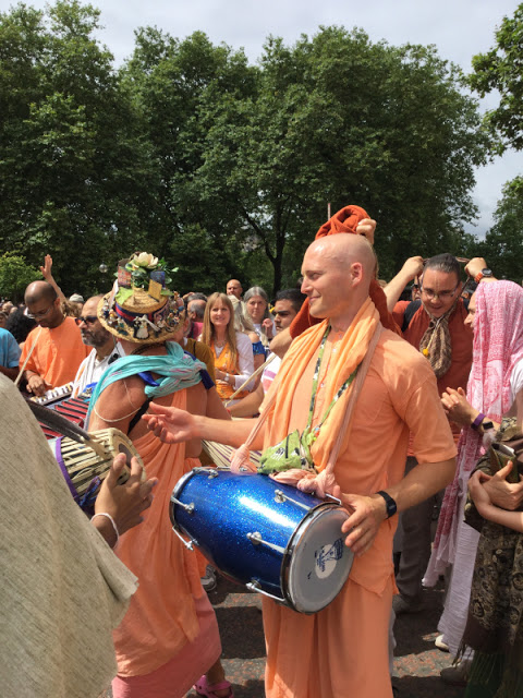 Prabhupada was not a general scholar or orator like Vivekananda. He was more than twice the age of Vivekananda when he went to America. He did not move with the elite. He did not talk about any vague Vedanta or philosophy in general terms. He did not try to please anyone. From the first day, he spoke only of Krishna and Krishna Consciousness without mincing words. He was an Acharya- practising what he preached and believed. He performed Deity (Murti) Puja, chanted, sang Kirtan, distributed Prasadam, preached Krishna Consciousness when occasion arose.. He did not talk in general terms about Indian philosophy. He spoke of Vedic wisdom, of Gaudiya Vaishnava tradition, of disciplic succession, of Krishna as the Supreme Personality of Godhead ( Bhagavan).