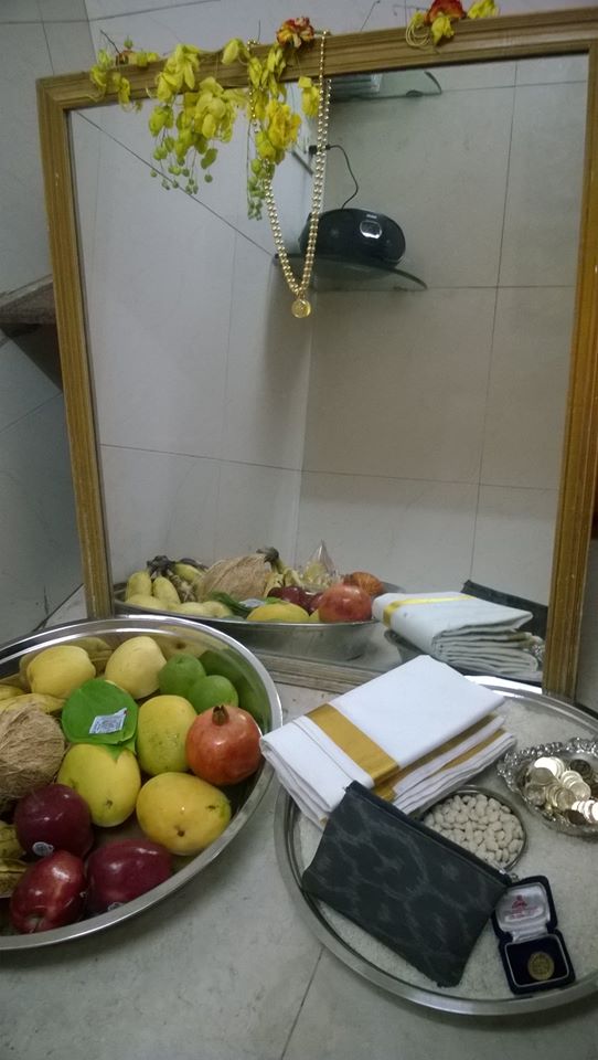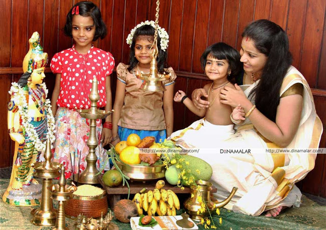 மிக விசேஷமாக கொண்டாடுவது சித்திரை அதி காலை மூடிய கண்ணுடன் வந்து “கண்ணாடி மூலமாக” தெய்வத்தையும், பணம், வெள்ளரி பழம், ஆரஞ்சு, வாழை, பறங்கிக்காய் மற்றும் தேங்காய் காய்கறிகள் எல்லாவற்றையும் பார்ப்பார்கள். பார்த்து பெரியோர்களை வணங்கி பணம் பெறுவது வழக்கம்.