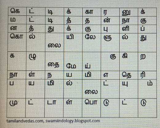 ஒரே சொல் பல பழமொழிகளில் வந்தால், ஒரு இடத்தில் மட்டுமே கட்டத்தில் காணப்படும் .