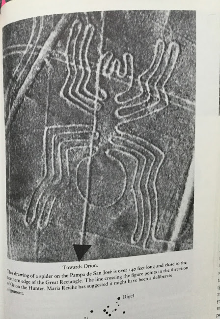 The 140 feet long spider drawing on the Pampa de San Jose is seen on Mycenae pots as well. In fact, lot of similarities are found in Mycenean and Nazca figures, particularly on pots.
