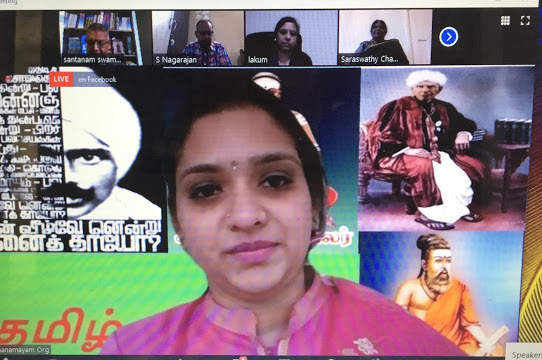 4.LIVE SPEECH PLUS VIDEO CLIP BY LATHA KUMAR FROM DETROIT TAMIL SANGAM, USA- SHE SPOKE ABOUT  VIPULANANDA’S  YAAZ NUL- BOOK ON TAMIL LYRE.