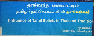 Dr. CHITRA FROM HONGKONG SPOKE ON “IMPACT OF TAMIL CULTURE IN THAILAND”.