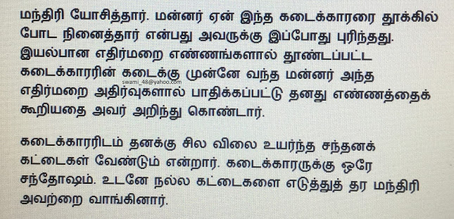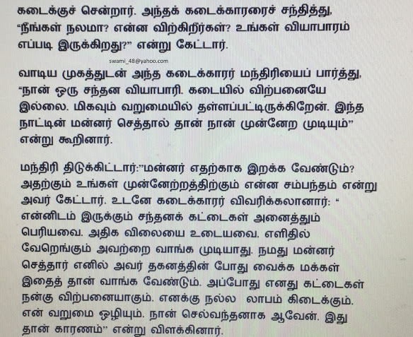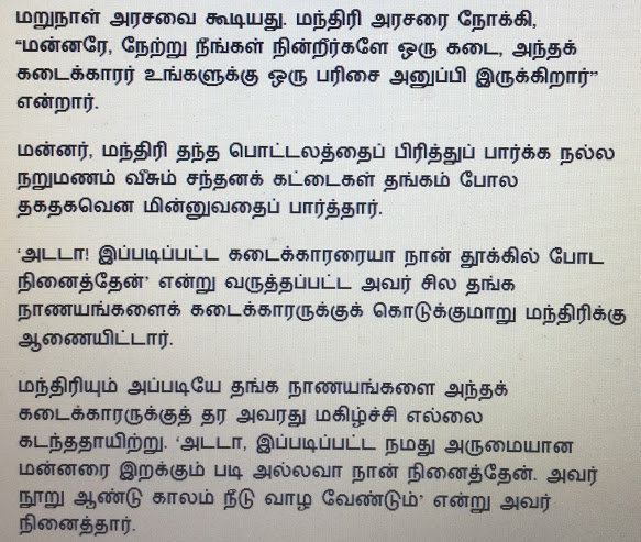 புத்தர் அவனைப் பார்த்து, “நான் ஒரு கதை சொல்கிறேன்” என்று ஆரம்பித்தார். ஒரு ஊரில் ஒரு அரசன் இருந்தான். அவன் ஒரு நாள் ஊரைச்