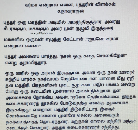 கர்மா என்றால் என்ன, புத்தரின் விளக்கம்! ச.நாகராஜன்