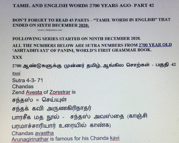DON’T FORGET TO READ 43 PARTS – “TAMIL WORDS IN ENGLISH” THAT ENDED ON SIXTH DECEMBER 2020;