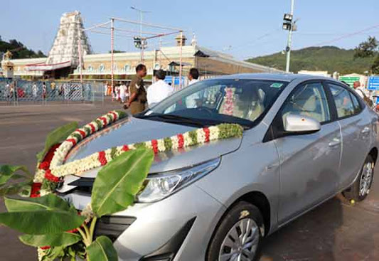 திருப்பதியில் உள்ள ஹர்ஷா டயோட்டா நிறுவனத்தினர், 20 லட்சம் ரூபாய் மதிப்புள்ள இன்னோவா காரை, நேற்று நன்கொடையாக வழங்கினர். காருக்கு மாவிலை, சந்தன குங்குமம் இட்டு, அலங்கரித்து பூஜை செய்து, பழங்கள் படைத்து வழிபட்டு, அதிகாரிகள் அதன் சாவியை பெற்றுக் கொண்டனர்.
