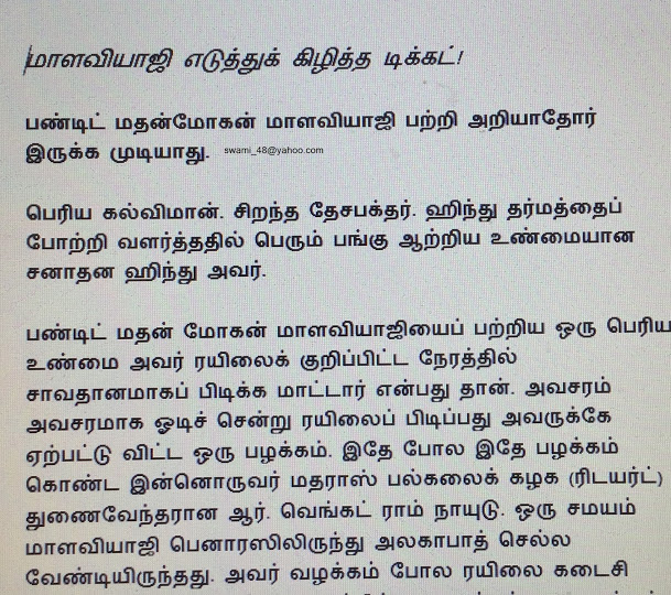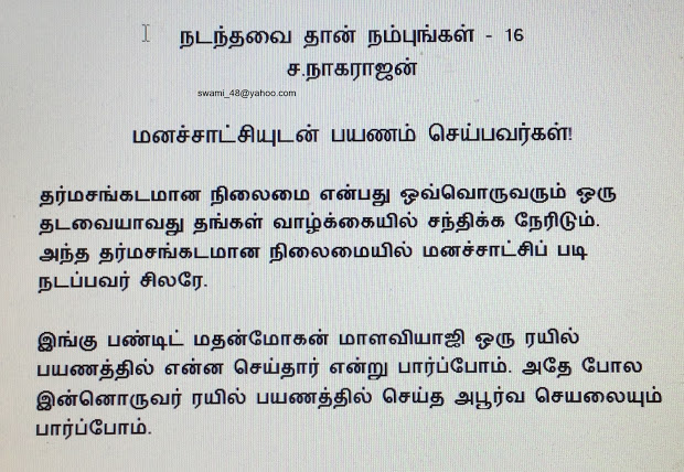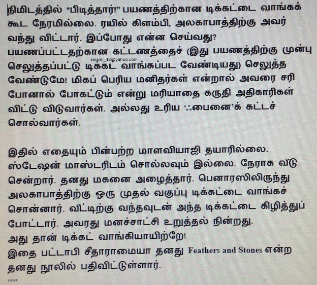 அந்த தர்மசங்கடமான நிலைமையில் மனச்சாட்சிப் படி நடப்பவர் சிலரே.இங்கு பண்டிட் மதன்மோகன் மாளவியாஜி ஒரு ரயில் பயணத்தில் என்ன செய்தார் என்று பார்ப்போம். அதே