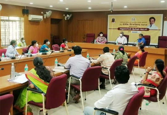 இந்து சமய அறநிலையத்துறை கமிஷனர் அலுவலகத்தில் அமைச்சர் சேகர்பாபு தலைமையில் ஆலோசனை கூட்டம் நடைபெற்றது. இது தொடர்பாக வெளியான அறிக்கையில் கூறப்பட்டுள்ளதாவது: இந்து சமய அறநிலையத்துறையின் கட்டுப்பாட்டில் உள்ள கோயில்களில் மேற்கொள்ளப்பட வேண்டிய தரவு சேகரிக்கும் பணிகள் மற்றும் இணையப்பதிவேற்றம் குறித்து முதல்வர் ஸ்டாலின் வழிகாட்டுதலில், அறநிலையத்துறை அமைச்சர் கீழ்க்கண்ட நடவடிக்கைகளை விரைந்து மேற்கொள்ள உத்தரவிட்டார்.