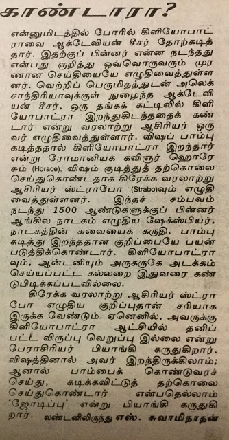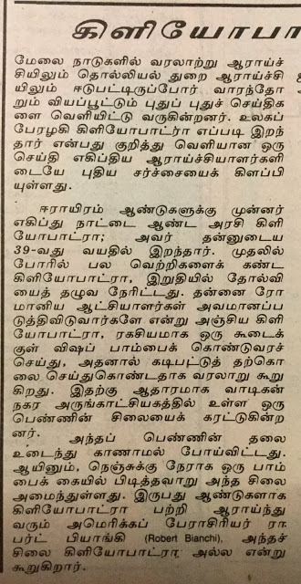 பி.பி.சி.நேயருக்குப் பதிலளித்த கிளியோ பாட் ரா விஷயம் அச்சானது.