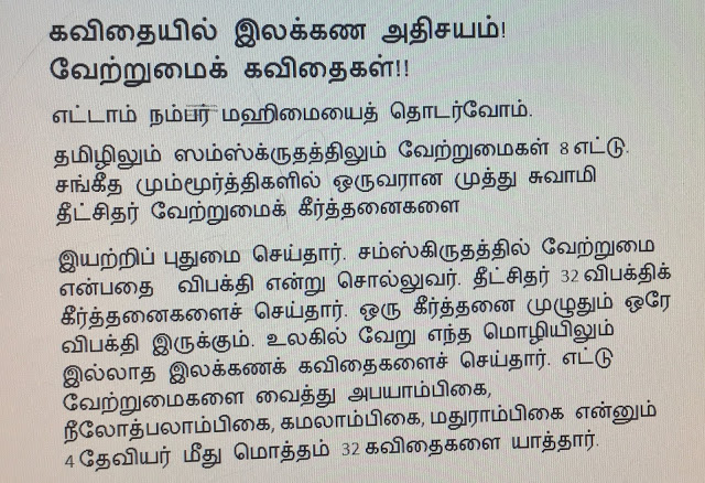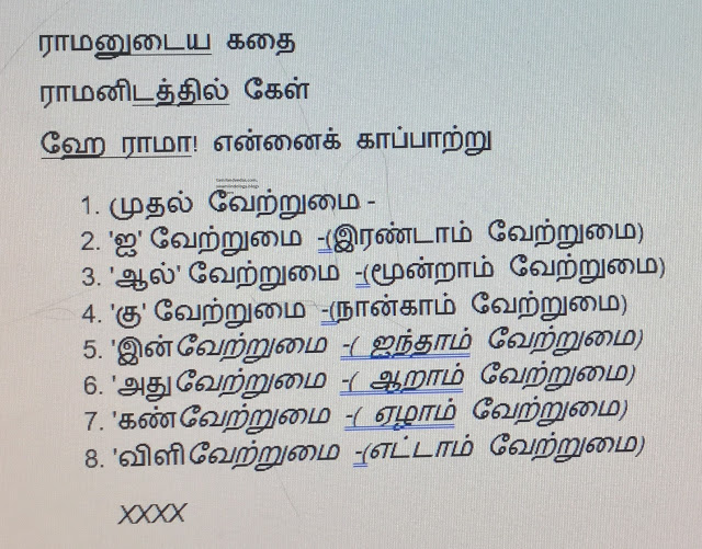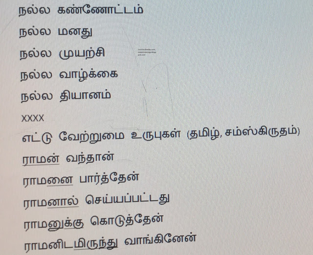 கூடியமட்டிலும் சொற்கள் பிரிக்கப்படவில்லை. மேலும் கீழுமாக, குறுக்கும் நெடுக்குமாகப் பாருங்கள்; சின்ன வயதில் பள்ளிக்கூடத்தில் கற்றது இவை.