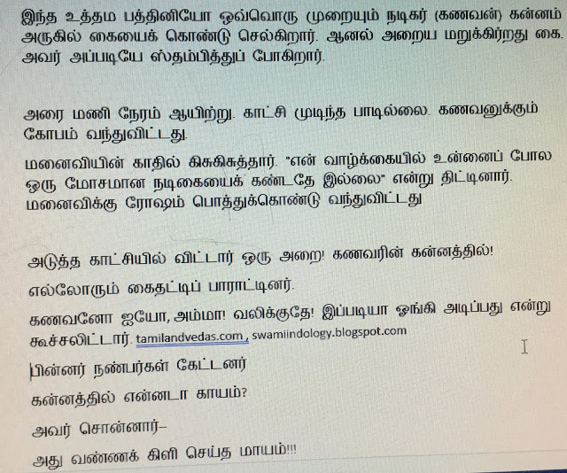 “மாமி, கோபிச்சுக்காதேள். நல்ல விவரமா சொல்றேள். அப்பறம்?”