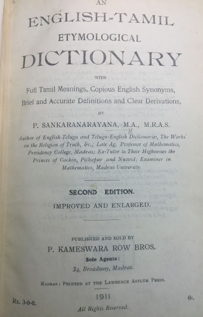 tags — lexicographer, English- Tamil, etymological, Dictionary, P Sankaranarayana, Chettiyar