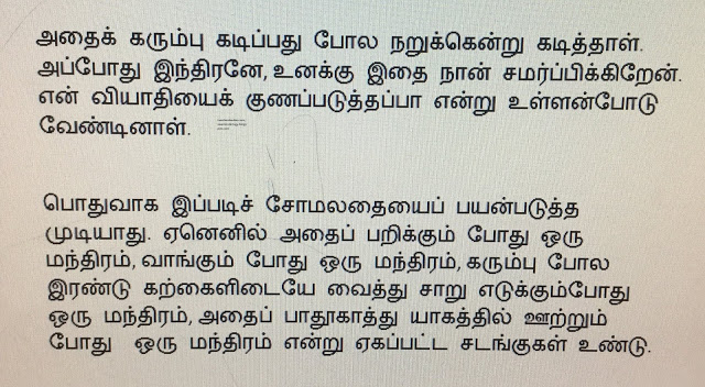 சங்கத் தமிழ் இலக்கியத்தில் கையாளப்பட்ட பல சொற்களை மத்திய கால இலக்கியத்தில் காணமுடியாது. சங்க காலத்தில் நிகழ்காலம், இறந்த காலம், வருங்காலம் என்ற மூன்று காலங்கள் கிடையா. பல உவமை உருபுகள் தொல்காப்பியப் பட்டியலில் உள்ளன. ஆனால் சங்க காலத்தில் கூட 2500 பாடல்களில் அவை இல்லை! இதை ஒப்பீட்டுக்காகச் சொல்கிறேன். உலகில் எல்லா மொழிகளும் மாற்றத்துக்குட்பட்டவை. சந்தி இலக்கணமும் வேத காலத்திலும் பாணினி காலத்திலும் வேறு வேறு.