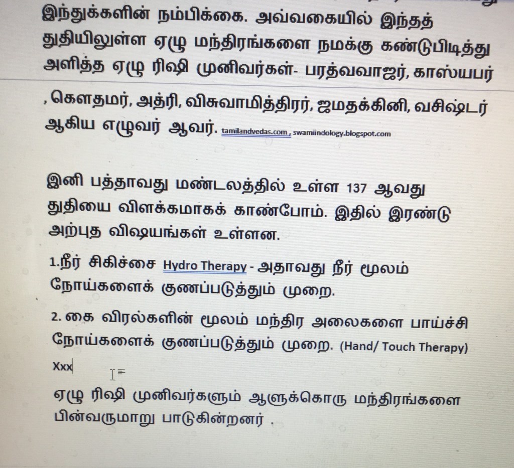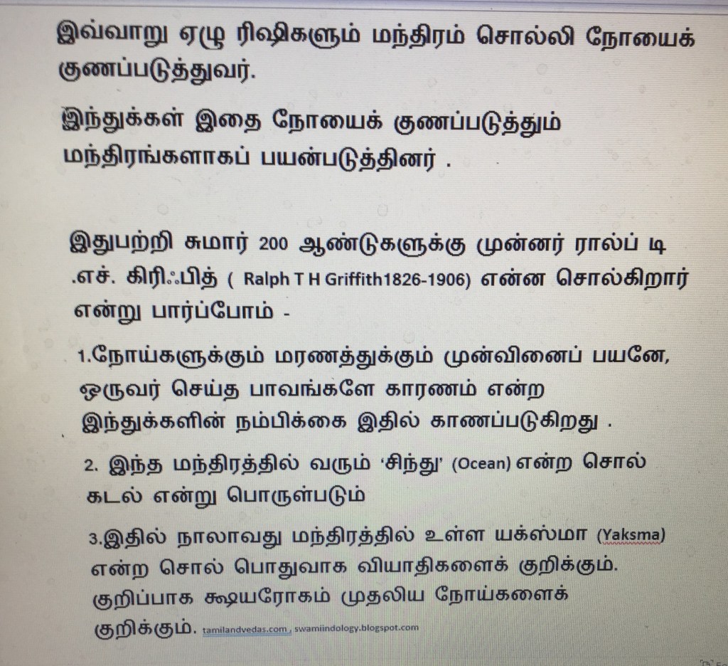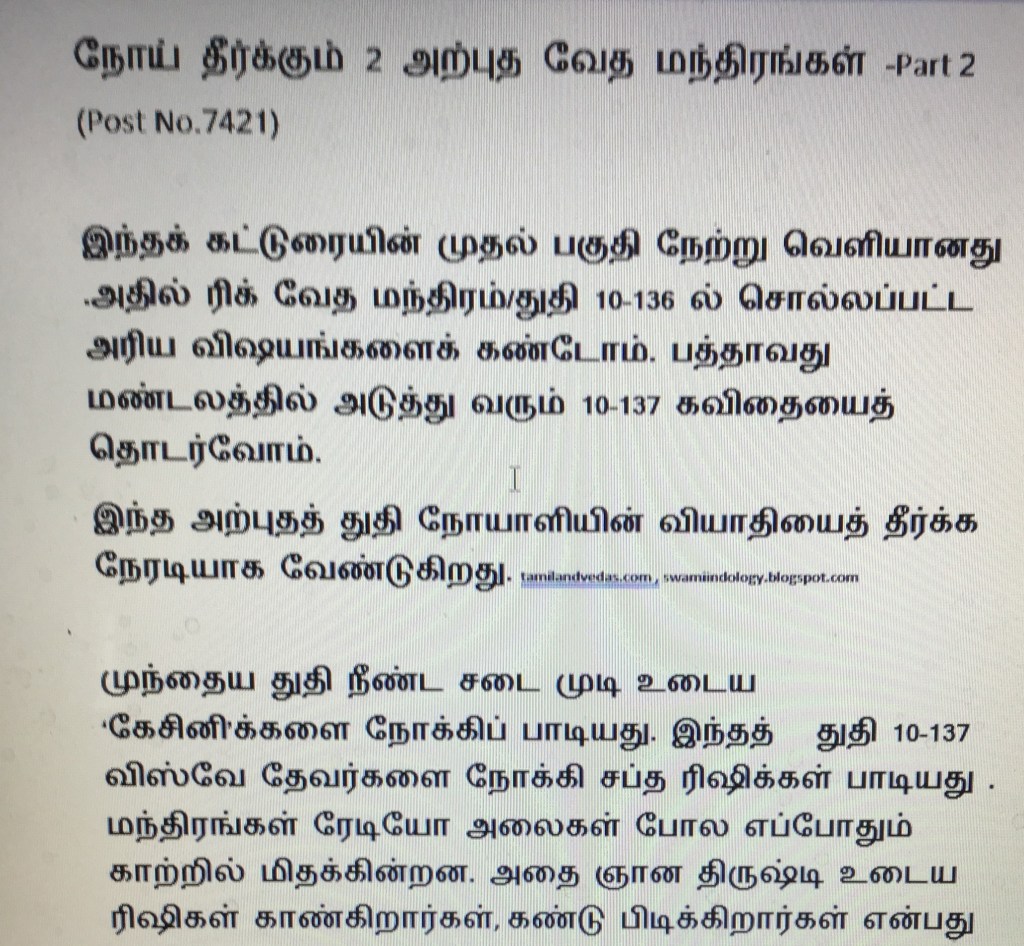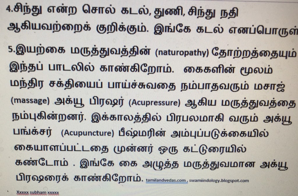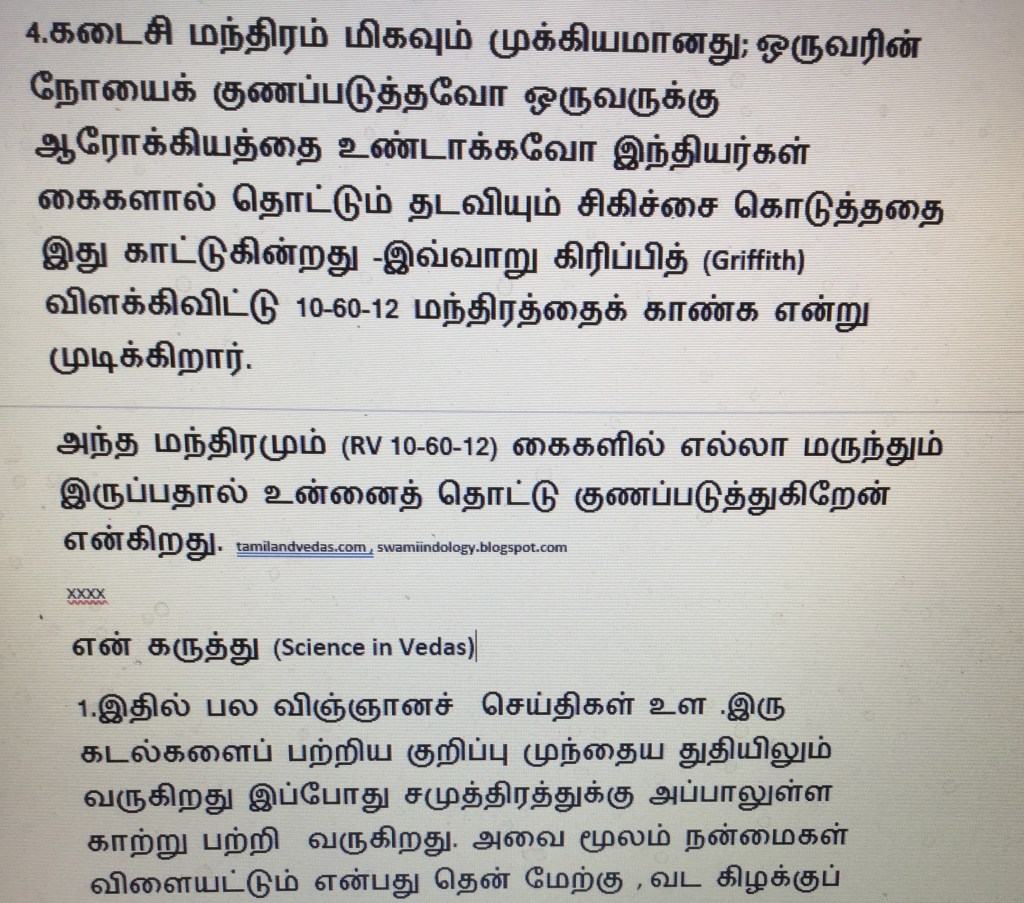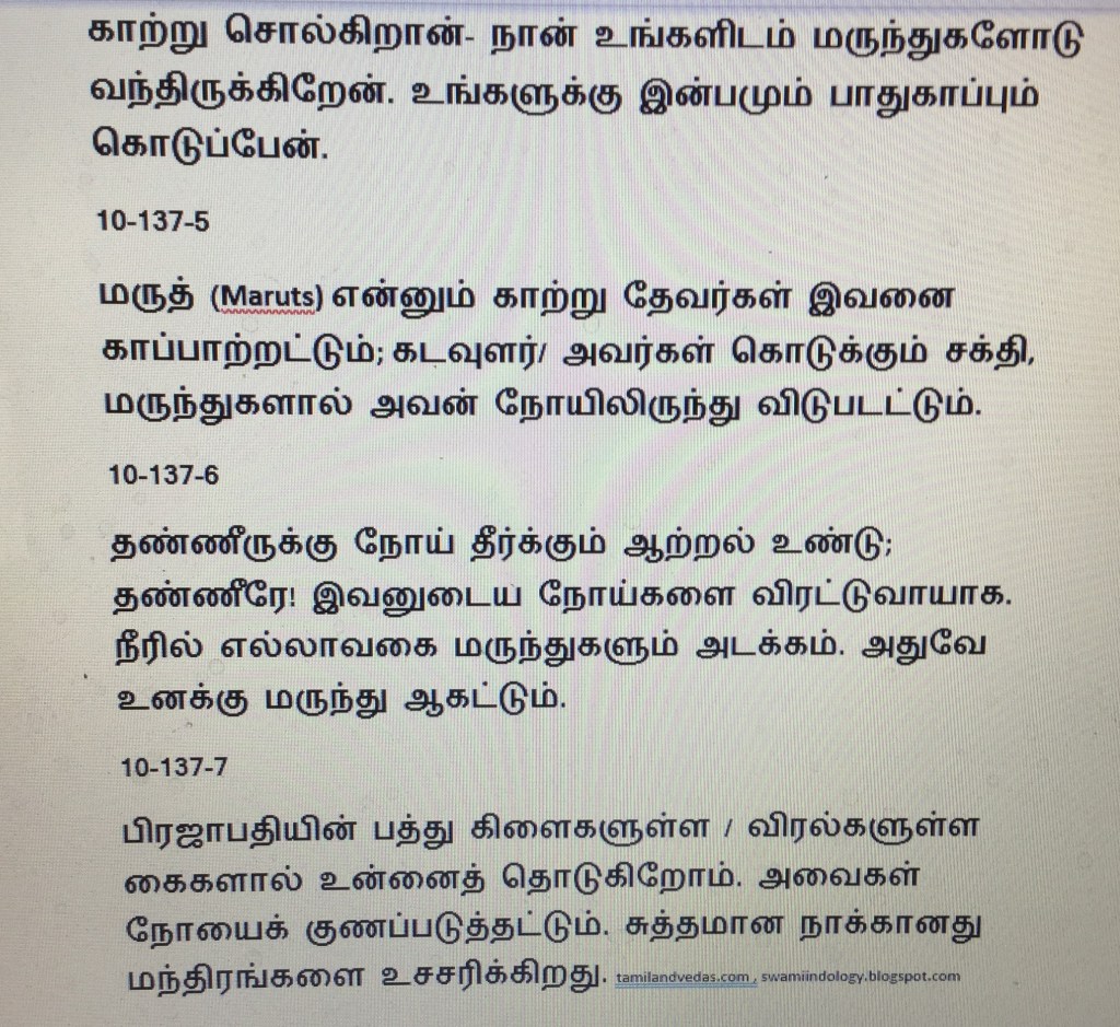 So I look at this hymn as a hymn on Naturopathy, Magical hand cure, Hydrotherapy, Meteorology and the Fresh air therapy which we get in hilly tourist resorts. tamilandvedas.com , swamiindology.blogspot.com