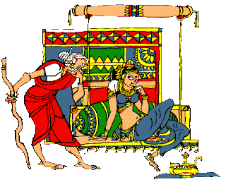 Pandu’s older brother was Dhritarashtra who was born blind. Because of brother’s blindness Pandu took over the reins of the Kingdom. He was ruling from Hastinapura. He married Kunti, who chose him as her husband in a Swayamvara ( a princess choses her own husband in an open competition). Later he married Madri from Madra Kingdom. In the olden days, a king could marry as many princesses as possible from neighbouring kingdoms to strengthen the country and save it from invasions.