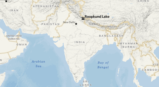 location in the first place. Roopkund Lake lies on the route of the Nanda Devi