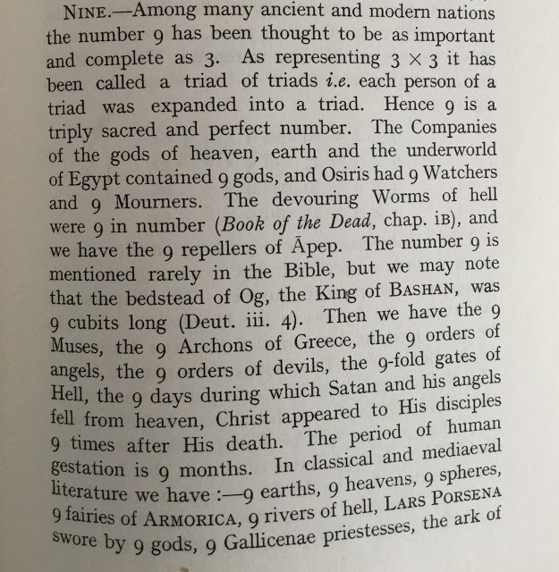 Number Nine is used in religion for its magical qualities. Hindus call their long hymns ‘Sahasranama’ (1000 names) but in reality it is 1008 names. In the same way 108 names for shorter hymns. The added number will be magical Nine. Nine has some rare qualities which other numbers haven’t got. Look at the attachments for more information. It explains the way number NINE is used in different cultures.