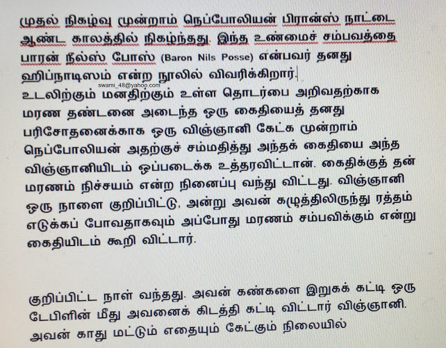 மனதின் ஆற்றலை யோக வாசிஷ்டம் கூறுவது சரி தானா என்பதை நவீன கால அறிவியல் நிகழ்வுகள் இரண்டின் மூலமாகப் பார்ப்போம்.முதல் நிகழ்வு மூன்றாம் நெப்போலியன் பிரான்ஸ் நாட்டை ஆண்ட காலத்தில் நிகழ்ந்தது. இந்த உண்மைச் சம்பவத்தை