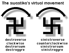 ஆனால் உலகின் அதிர்ஷ்டத்தின் காரணமாக ஹிட்லர் ஸ்வஸ்திகாவின் சுழற்சியை இடப்பக்கமாக மாற்றி அதை 45 டிகிரி கோணத்தில் வேறு வளைத்து தீமையைத் தரும் ஆசுரிக் ஸ்வஸ்திகாவைத் தேர்ந்தெடுத்தான். விளைவு, அசுர வேகத்தில் முன்னேறிய அவன் அதல பாதாளத்தில் வீழ்ந்தான்.